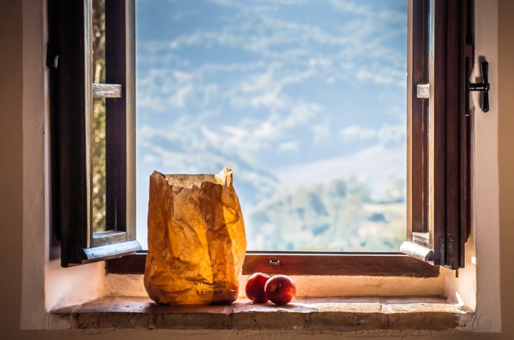 Нагулялись , надышались утренним свежим воздухом и перед тем как отправится дальше, в Тоскану пошли на завтрак. Пока тепло его накрывают для всех во дворе , но кроме нас , в этот час здесь никого не было. Женщине, которая его готовит , пришлось на пальцах объяснять как приготовить яйца ,но всё остальное и в большом разнообразии стояло на стендах — свежее и очень вкусное.