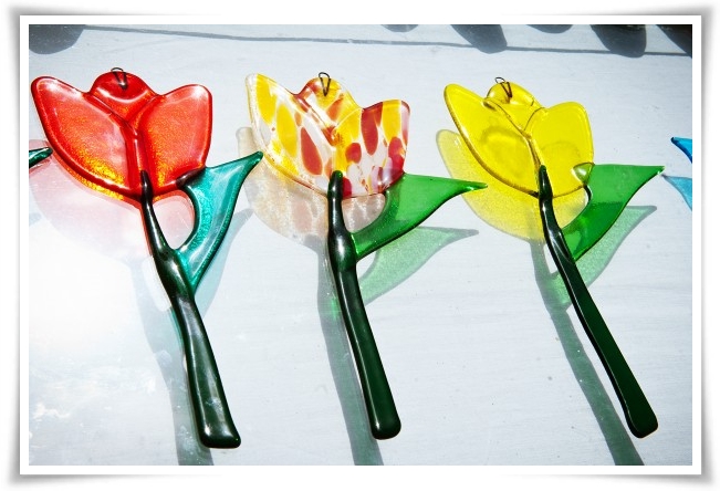 На улице тоже есть лотки с товарами-самоделками. Мы купили красную стеклянную, пучеглазую совушку из красного стекла.