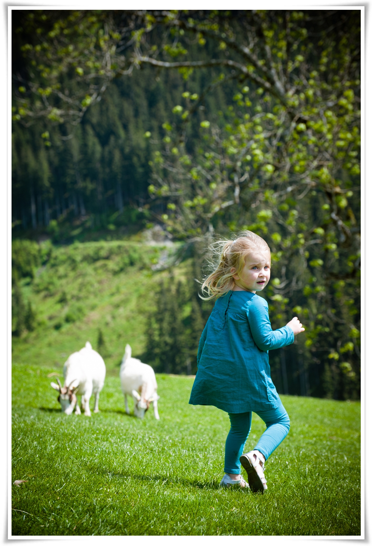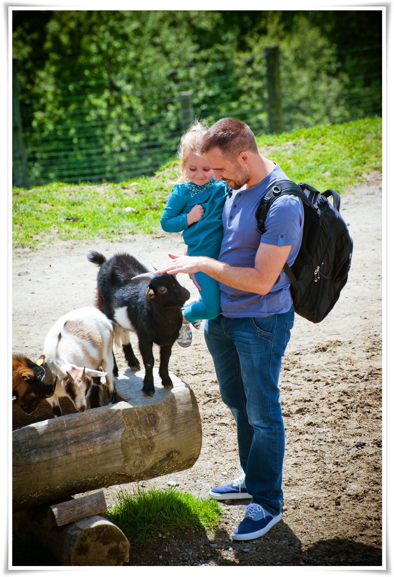 Адель так настойчиво гонялась за этими козлами и так хотела их потрогать. А козлы хотели просто щипать травку и чтобы их не беспокоили. А ребёнок истерила,что они не хотят тискаться ,как она)) Топала ногами и требовала от Макса,чтобы он подвинул к ней козлов, так как сама она их боялась))