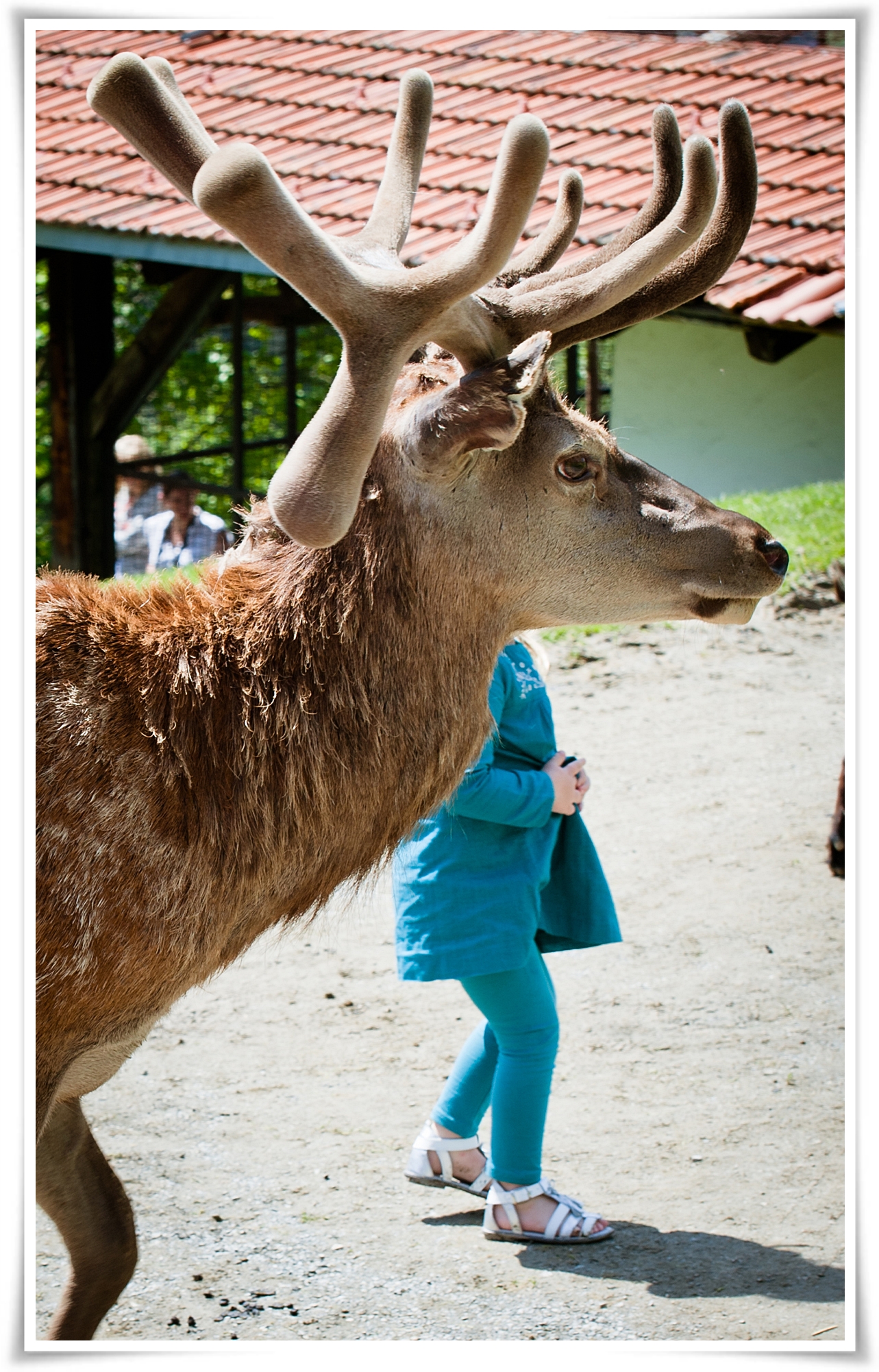 Мои воспользовались тем,что звери отвлеклись и пошли их гладить прямо возле  кормушек