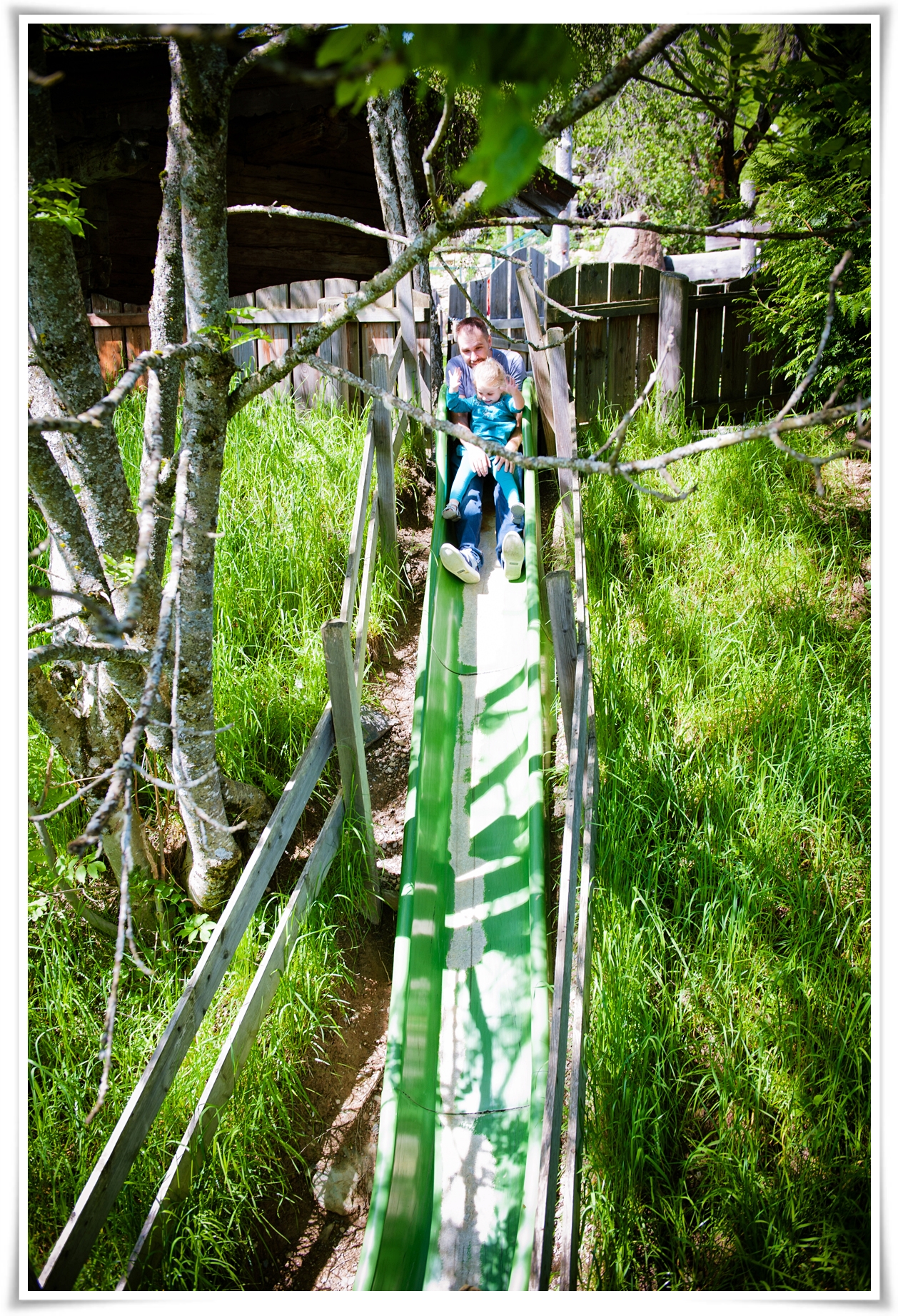 Мои скатились с какой-то горки, ободрали локти, долго матерились  и больше не полезли))