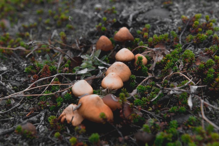 Осенняя рыжая роща, сменилась каменистой равниной , с пока ещё зеленоватыми островками — проплешинами , а та серым космическим ландшафтом. Вкупе с серым небом и правда казалось, что мы не на Земле и сейчас из-за той насыпи приковыляет марсоход.