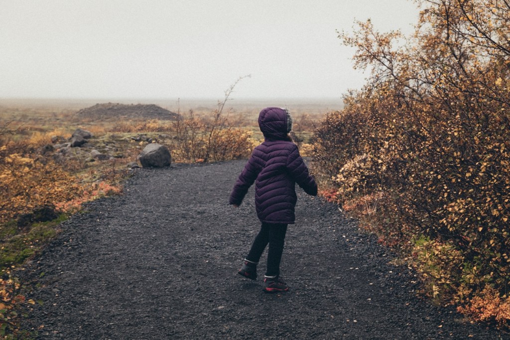 Но мы не дерзкие, мы пошли к подножью ледника по самому короткому и лёгкому пути — S1. И то, в сопровождении моросящего дождя и уставшего ребёнка , он не показался там таким уж и простым. Вроде и не в гору, а по вполне себе прямой тропе сначала вдоль горы через низкорослую рощу, потом просто по каменной долине , но всё равно это не было легко и просто как ожидалось)