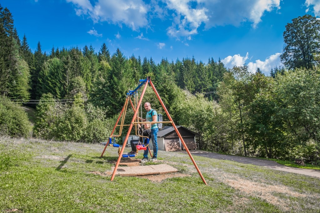 Здесь, в конце, делать практически нечего. Есть чей-то странный дом, там семья живёт) У них рядом лавка и можно купить сладости и кофе. Посидели на их веранде, съели по мороженому , Аделька покачалась на качели и тронули назад.