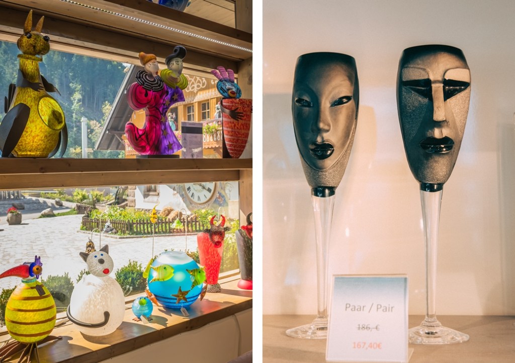 Недалеко от той кафешки, где мы пили кофе утром и прямо напротив домика с огромными часами, есть пара интересных лавок , в одной продаются настенные часы с кукушками , а вторая стеклодувная мастерская и при ней магазин или , наоборот, магазин и при нём мастерская) . Немного фотографий ниже в карусели.
