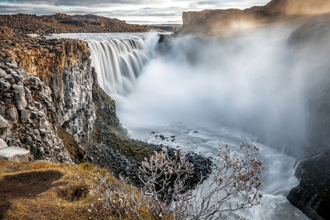 Детифосс считается самым мощным водопадом во всей Европе. Подъехать к нему можно 2 разными дорогами , свернув с первого шоссе на дорогу № 864, либо с западной стороны по дороге №862.