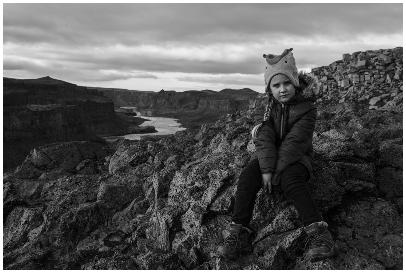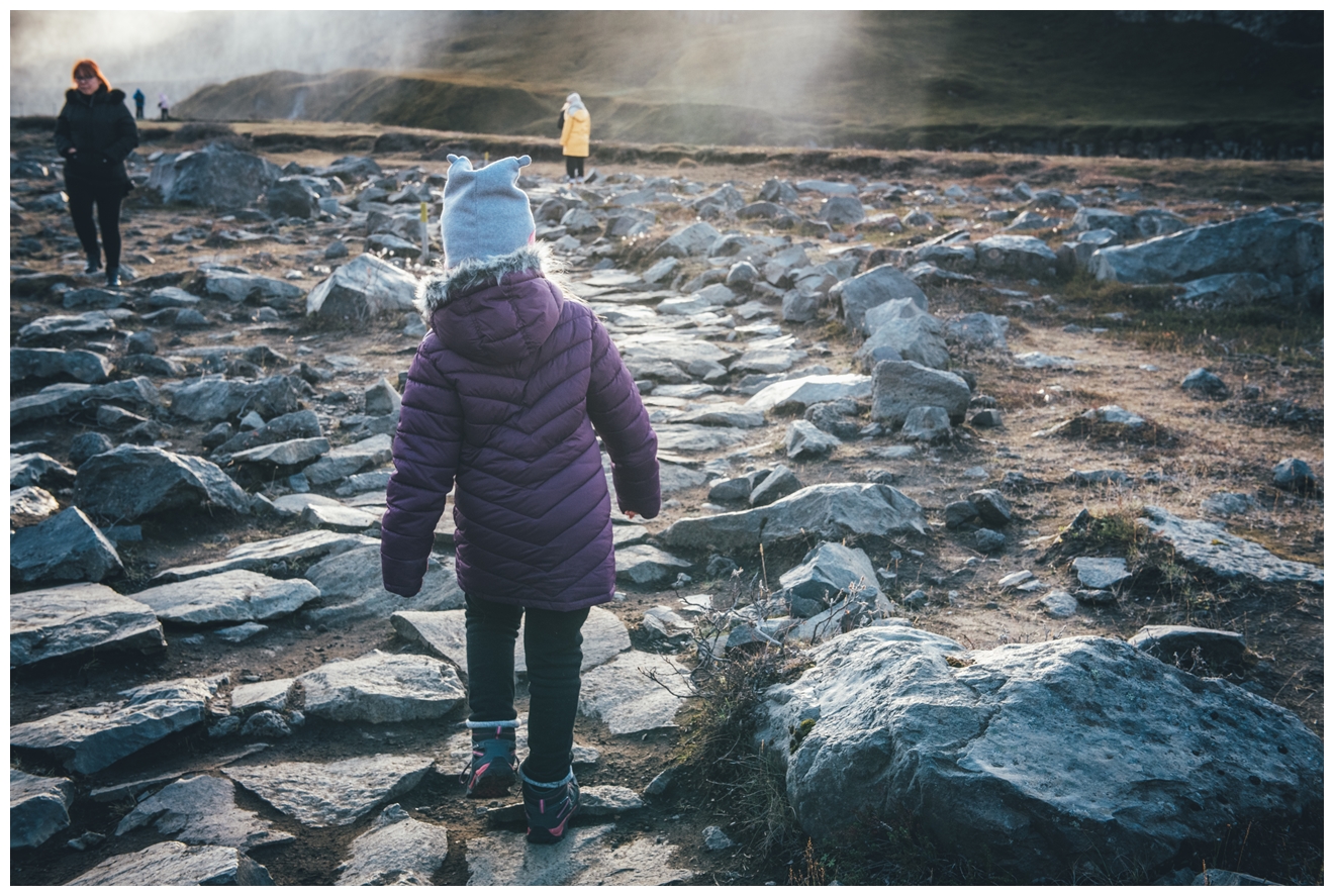 Мы смотрели его с верхней точки — для тех, кто не ищет приключений . Другими словами — «у них ребёнок и им совсем не улыбается топать около двух километров, чтобы снять каньон с нижней его точки». Но именно там и получаются самые волшебные фотографии. Такие как мы паркуются возле фермы под названием Grund и пройдя пешком всего 200-250 метров , наблюдают красоту сверху. Можно ещё чуть-чуть спуститься по извилистой тропинке вниз , но нужно быть очень острожными. Тропинки эти хоть и ограничены верёвками ,но очень и очень скользкие и на поворотах можно не удержаться и улететь. Я проехала на попе пару метров на спуске и переживала больше не за то, что убьюсь сама или камеру убью, а за то, что Аделька сверху увидит как матушка скользит в пучину. Но она этот момент не видела и дрон Макса, летающий над головой, почему то именно этот эпический эпизод тоже не заснял.