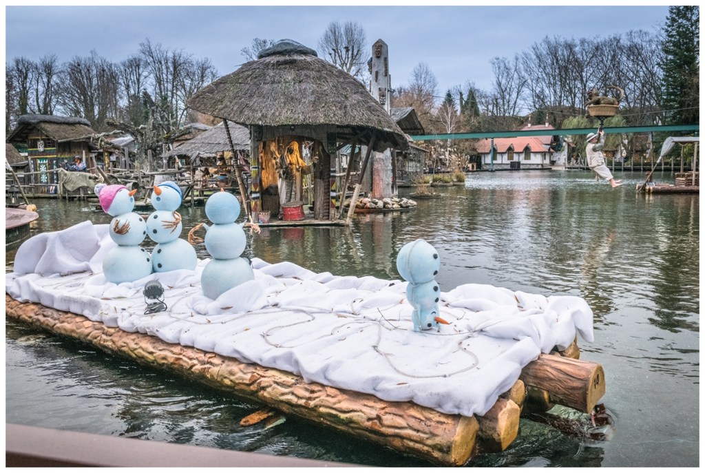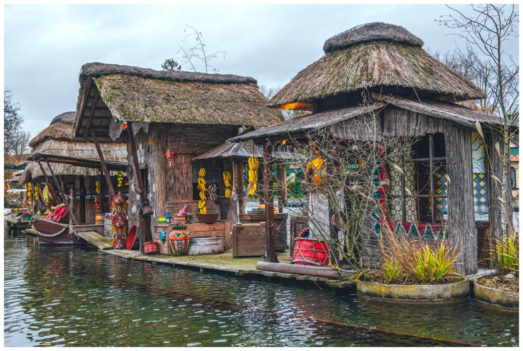 По дороге из Швейцарии в Мир сказок братьев Гримм , прокатились на плотах по водоёму мимо хижин и сценок из колониальной африканской жизни. В сопровождении приставучих уточек.