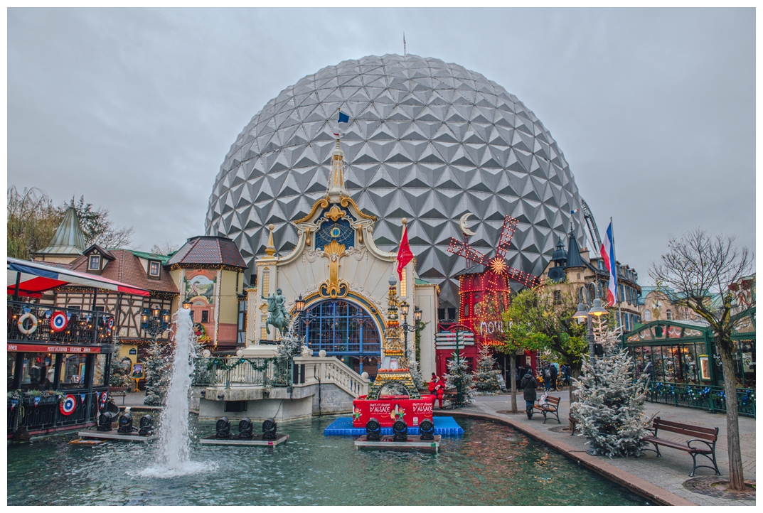 Уже совсем стемнело и мы начинаем двигаться к выходу. В парке провели всего-то 6 часов и учитывая 2 раза на перекус не так уж много и успели. Но мы приехали довольно поздно, можно было и пораньше. В Рождество парк работает с 11 утра и до 19 вечера, проблема только, что в это время года светового дня не так уж и много . Но зато какое шоу вечером на крыше Мулен Руж!