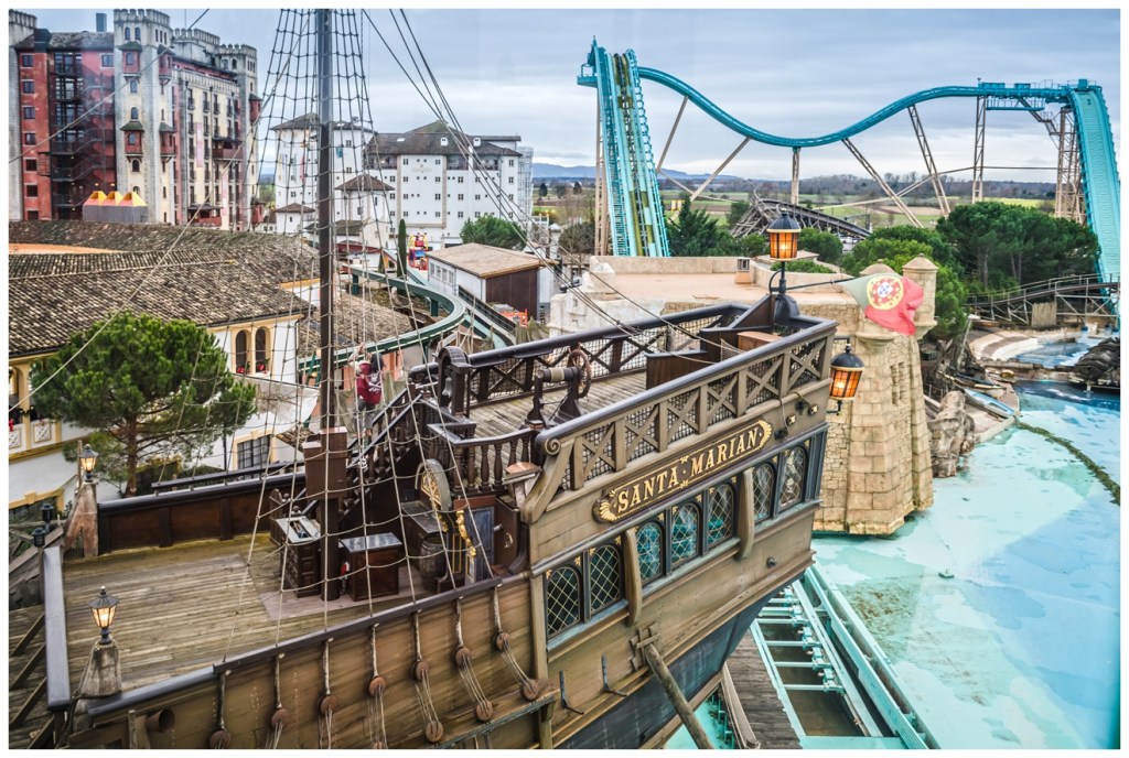 С колеса обозрения , на котором зимой кататься холодно и ветренно, открывается вид на главный аттракцион Португалии — водные горки Atlantica SuperSplash , естественно сейчас не работающие. Надо будет обязательно приехать ещё раз, чтобы на скорости 80 км/ч совершить падение с высоты 30 метров. Бр-р-р-р-р-р……..