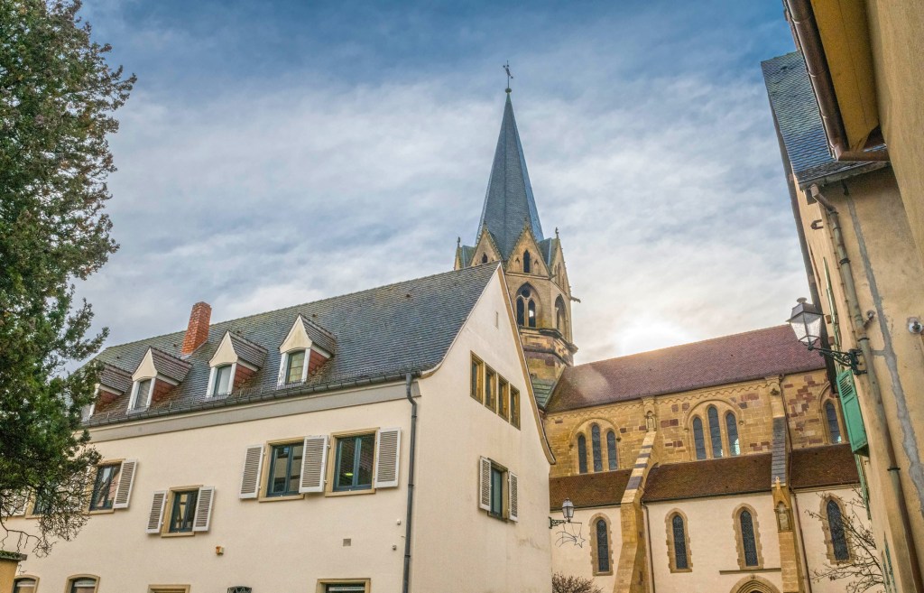 Более менее «большой» населённый пункт рядом с нашим Стосвиром это Мюнстер . Практически каждый день, чтобы выехать куда-то нужно было проехать через него. И каждый раз мы говорили, что надо бы остановиться тут, может быть как-то вечером поужинать, но так и не сделали этого. Остались только фотографии из окна машины — утренние и вечерние)