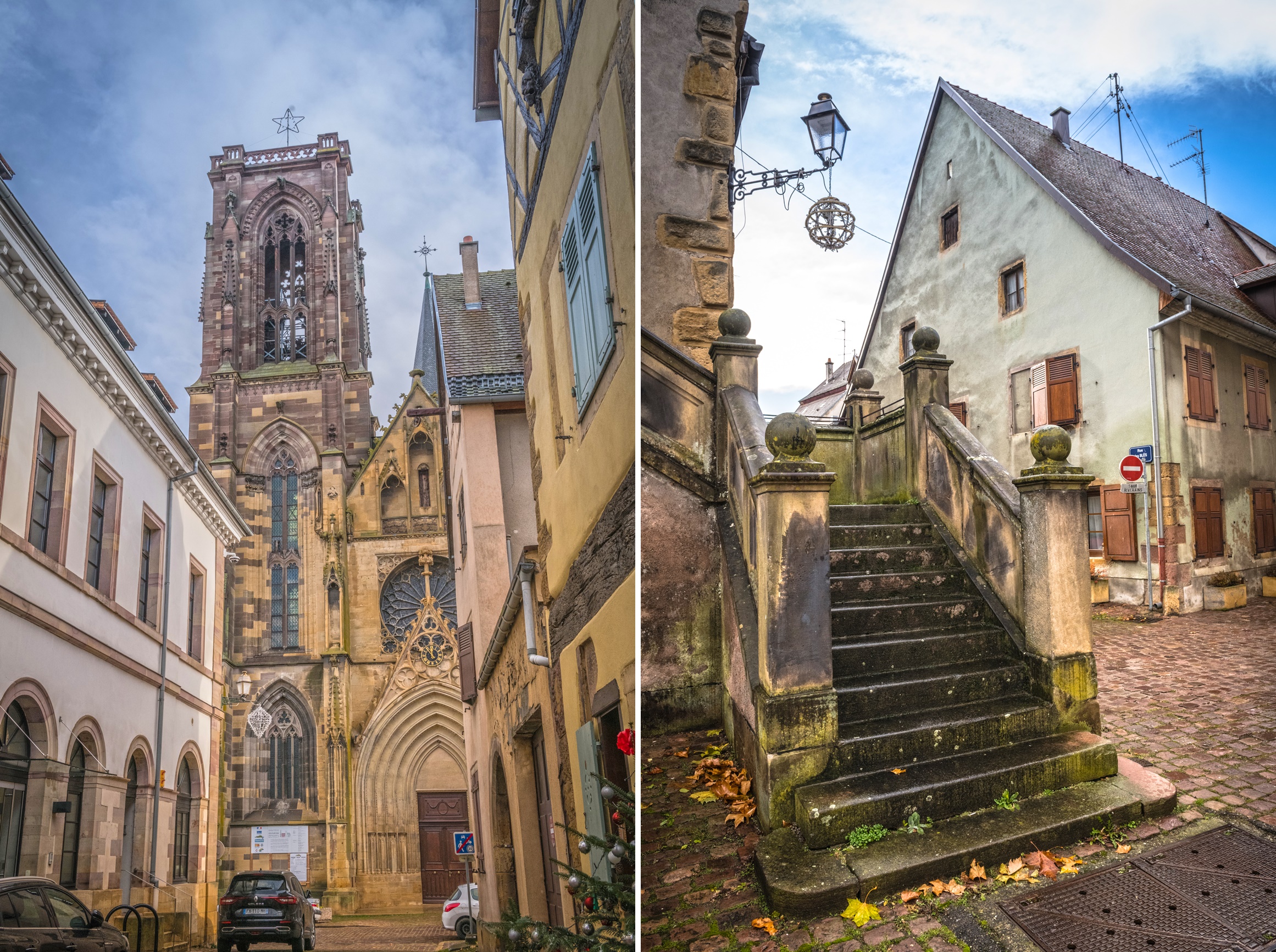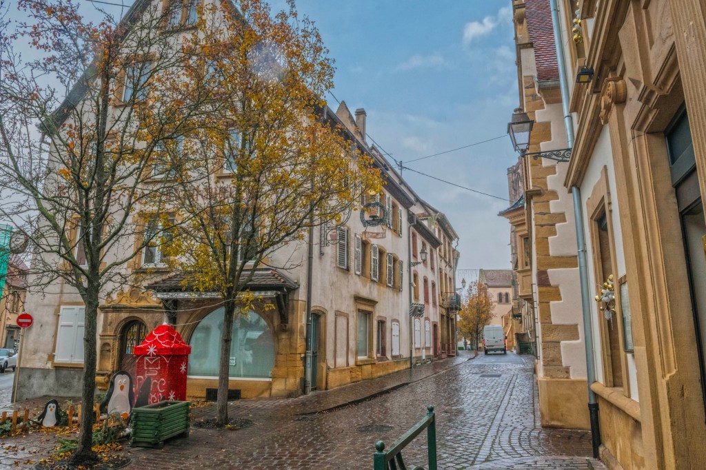 На сегодня у меня был запланирован чёс по эльзаским деревням, в которых мы не побывали в прошлый раз, но прогноз погоды не особо радовал — обещали, что целый день будет дождь. Пока выехали из нашей деревни, вроде бы ни облачка , но как только заехали в Руфаш полил дождь.
