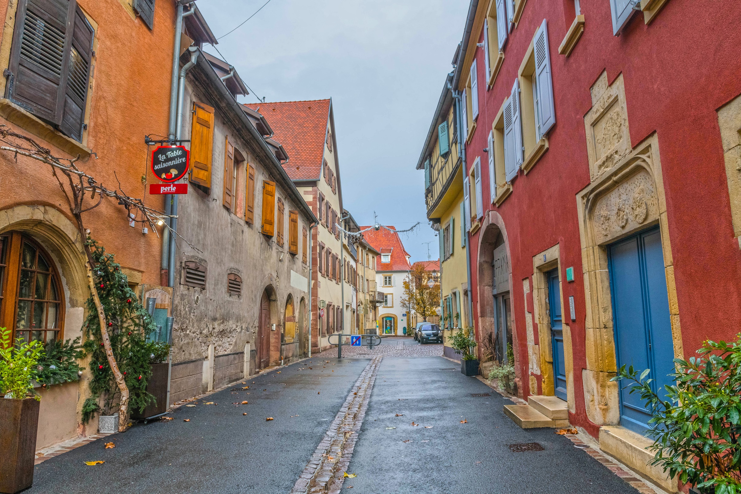 Ну вот другое дело, теперь когда небо ясное , можно и прогуляться по городу. Совершенно другое ощущение от него. Теперь он уже не кажется таким уж и серым и мрачным , а очень даже по-эльзаски яркий и праздничный, но только безлюдный. Это вам не какой-нибудь там Рибовилле , в котором самые лучшие тусовки, который never sleep. Это — Руфаш )