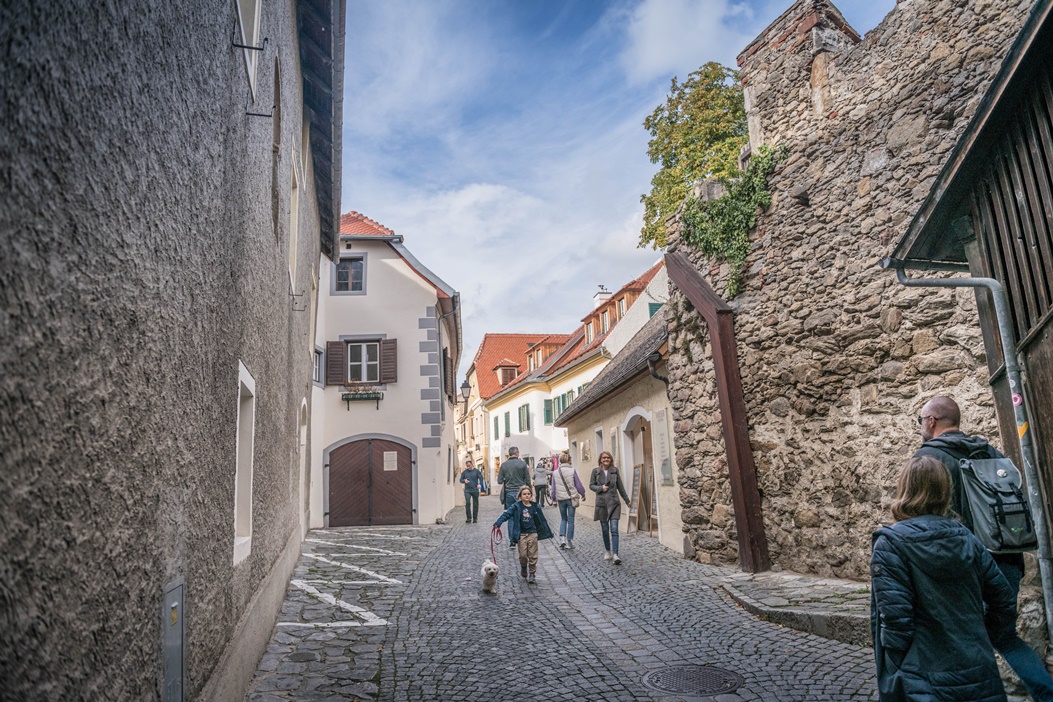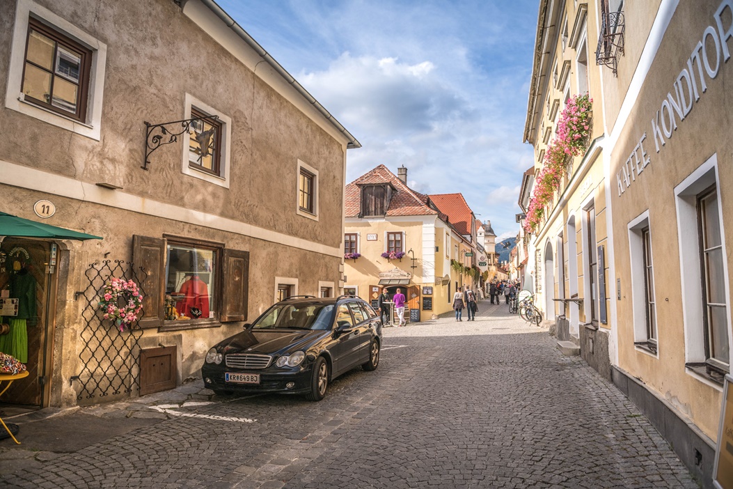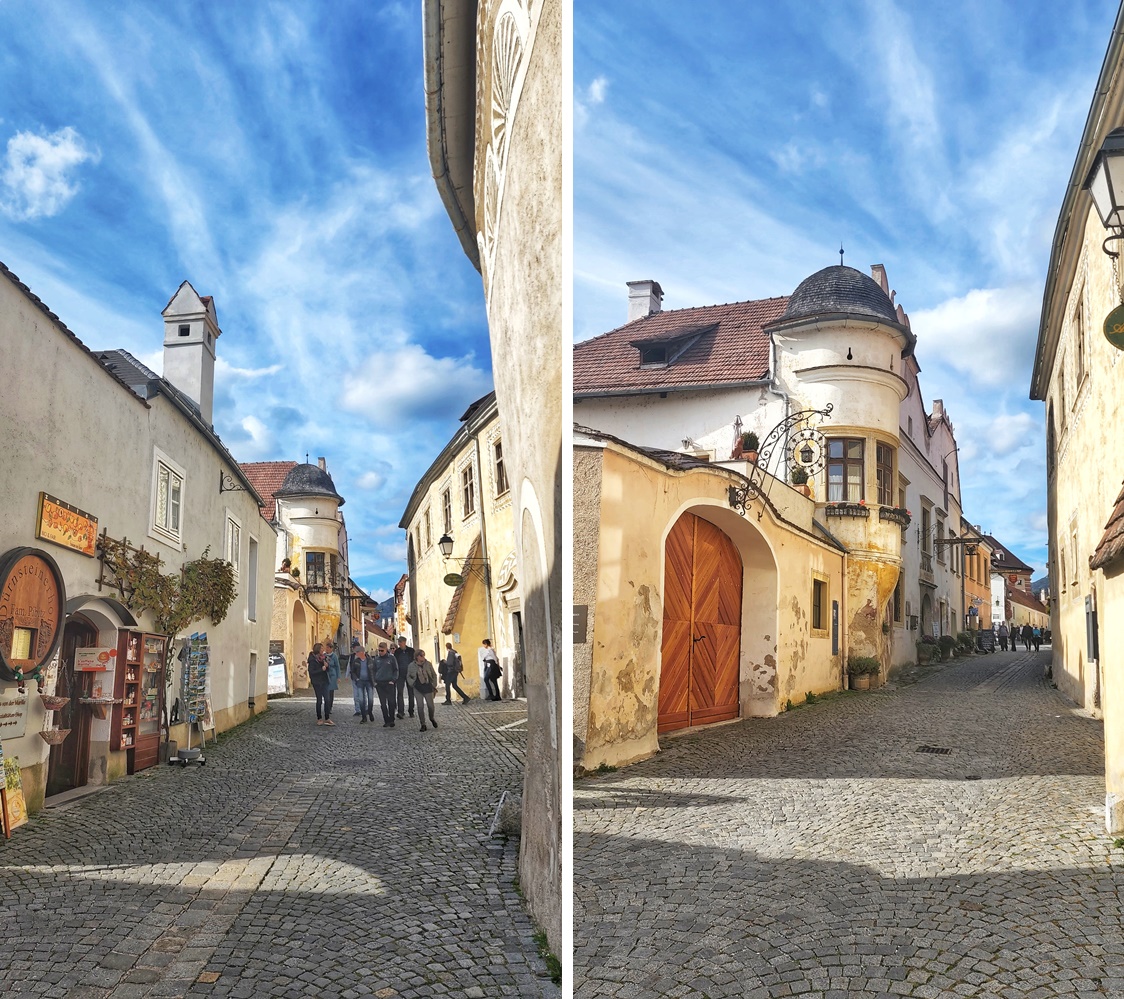 Конечно же не единственной красивой улицей Дюрнштайн и в целом долина Вахау заманивают к себе многочисленных туристов. Это один из самых престижных винодельческих регионов страны. Вахау известен своими виноградниками, которые растут на террасных склонах (ступенчатые такие берега) , образованных в результате эрозии реки. Ну и конечно же благодаря особому климату .Комбинация прохладного воздуха из долины и теплого солнца, отражающегося от Дуная, создает идеальные условия для созревания винограда.