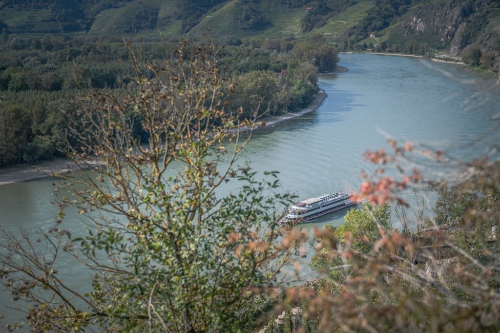 Но и оттуда, где мы остановились, открывались невероятно красивые виды на Дунай, кораблики, и виноградники. В тот момент я подумала , что иногда, чтобы насладиться красотой, не обязательно достигать вершины; главное — остановиться и просто наслаждаться тем, что уже перед глазами.