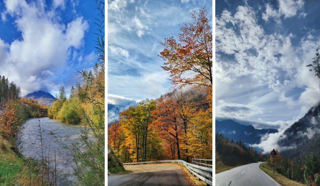 Осень уже вступила в свои права, и дорога была словно нарисована: горы, переливы листьев самых разных, жарких цветов, повороты с видами на полные реки и густой туман. Сделали всего пару остановок, я попросила , чтобы заснять как туманное облако словно врезается в гору со всей силы и разбивается о неё. Но вообще, хотелось останавливаться каждые 500 местров …. но тогда бы мы ехали весь день)
