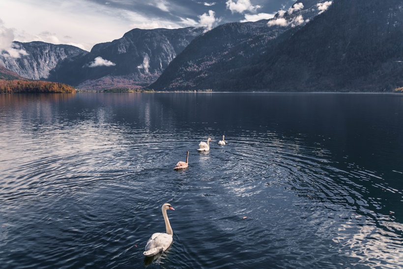 У Хальштатта есть одна очень узнаваемая и постоянная, а не сезонная, достопримечательность — местные лебеди. Их тут никто специально не выпускает, они просто живут своей жизнью. Но хальштаттцы, алло! Зачем вы этих гигантских пластмасовых лебедей в озеро запустили? Эта «урбанина» (ц) , здесь совсем не к месту )